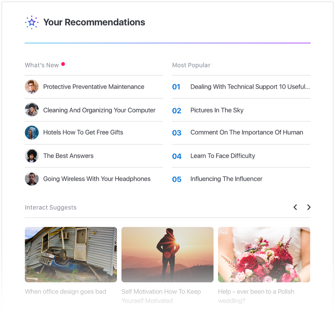 Any worthy modern intranet should include AI capabilties to provide a variety of benefits. Interact utilizes AI to provide intranet users and managers with elevated experiences, from content generation, to personalization, delivery of communications, and knowledge accessibility: