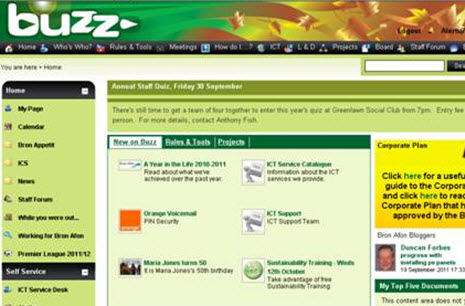Bron Afon see their intranet, Buzz as a central tool that complements traditional methods of business processes. They recognised that it was important for staff to buy into the intranet to ensure its success. With the backing of senior management they established a core group of 37 ‘Buzz Contributors’ from across their organisation who meet once a month to share ideas – thus keeping content fresh and addressing any issues they may have encountered. All contributors have a badge which sits on the top of their PC which identifies them as a Buzz Contributor – a great way to identify them and ensures people know who to come to with any ideas or feedback on thenintranet.