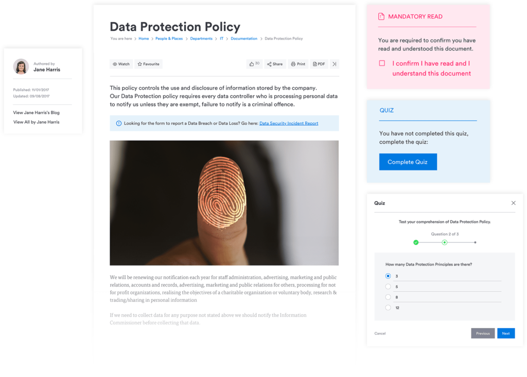 When compliance calls for demonstrating that staff have read and understood a particular policy or document, a digitalized acknowledgment system – where staff tick or e-sign to confirm they’ve read a particular document, can be reminded if they’ve failed to do so, and a digital report exported to that effect – can reduce the administrative burden. An intranet CMS should consider and support these requirements.